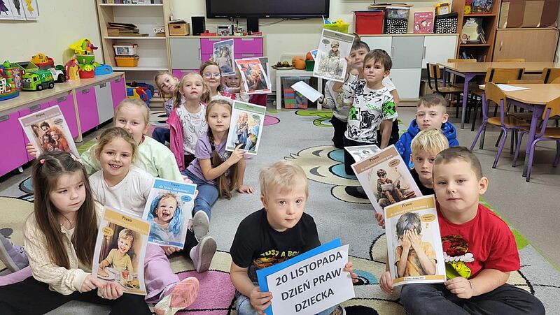 Każde dziecko każdego dnia jest chronione i wspierane w rozwoju przez zestaw specjalnych praw. Styka się z nimi nieustannie – w domu, w przedszkolu, na podwórku, na ulicy, w relacjach z innymi oraz w czasie wolnym. My, dorośli, mamy ogromny wpływ na to, jak dzieci przeżywają te prawa i jak ich doświadczają. W tym dniu, w każdej grupie odbyły się zajęcia przypominające prawa dziecka. Po wysłuchaniu bajki terapeutycznej " O drzewie, które słuchało" dzieci wypowiadały się na temat swoich praw, dobierały pary obrazków i kolorowały ilustracje.