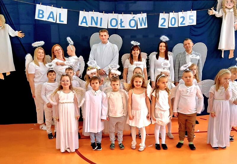 Na szkolnym Balu Aniołów, który się odbył w dniu 27 listopada 2025 r. bawiły się dzieci z grupy Biedronek i Misiów. Celem balu było promowanie chrześcijańskich wartości, rozbudzenie wrażliwości na dobro, prawdę i piękno, integrowanie się z uczniami klas I-III.