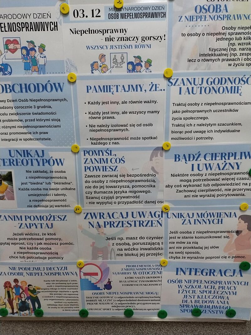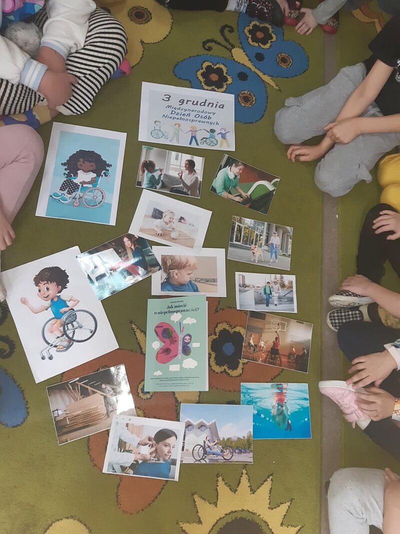 3 grudnia dzieci z grupy IV "Biedronki" i III "Krasnoludki" uczestniczyły w zajęciach warsztatowych z okazji Międzynarodowego Dnia Osób Niepełnosprawnych. Celem zajęć było uświadomienie dzieciom, że żyją wśród nich osoby z różnymi niepełnosprawnościami, którym należy pomagać i okazywać życzliwość.