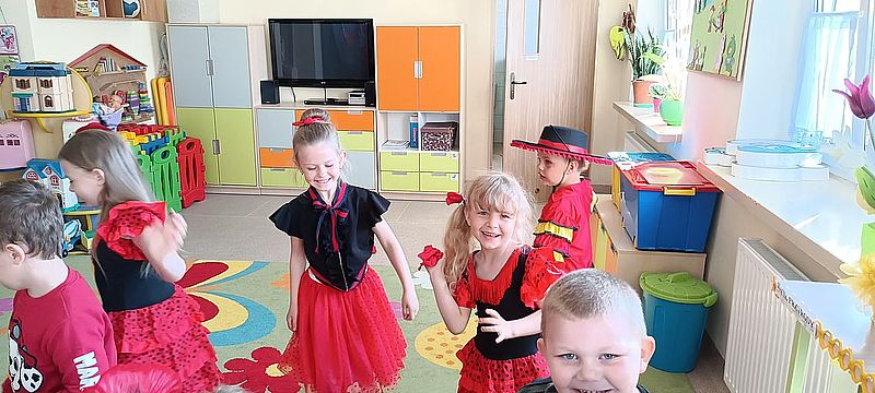9 maja obchodziliśmy Dzień Unii Europejskiej. Z tej okazji dzieci realizowały w przedszkolu tematykę poświęconą Europie i wybranym krajom europejskim. Odbyliśmy podróż do Hiszpanii, Polski, Francji, Wielkiej Brytanii, Włoch, Holandii oraz Czech.
