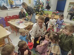 11 grudnia gościliśmy panią Anię , która opowiedziała nam historię lepienia pierników. Poznaliśmy zapachy, przyprawy i składniki potrzebne do wykonania świątecznych pierników. Ugniatalismy, wałkowaliśmy , wyciskalismy kształty pierników, by na koniec je ozdobić kolorowym lukrem. Poczuliśmy mąkę świąt, a zapach pieczonych pierników pozostał w naszej sali na długo. Pszczółki i Krasnoludki