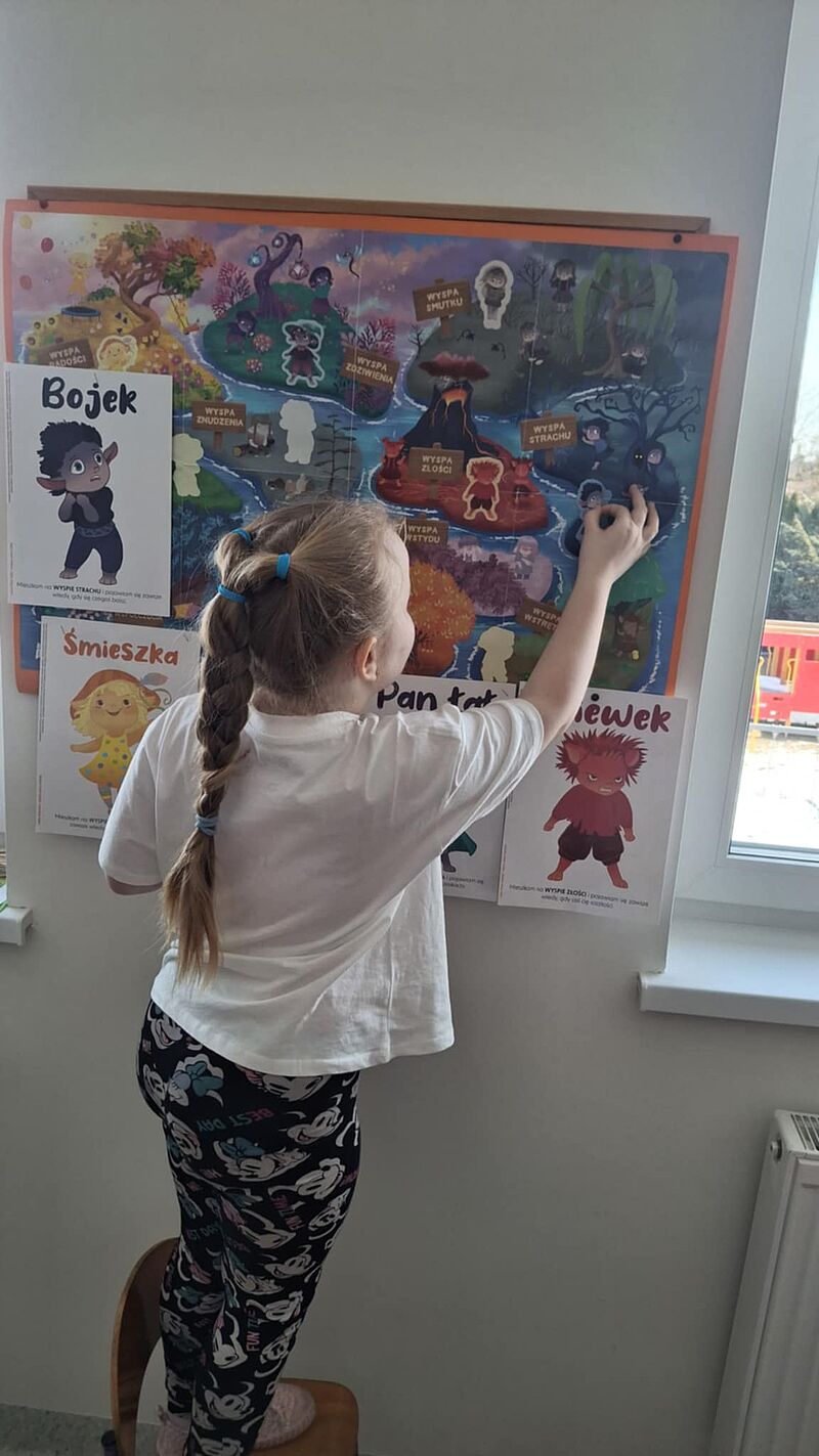 W ramach realizacji projektu „Czuciaki z Krainy Emocji”, grupa Misie poznawała kolejną ważną emocję – strach. Tego dnia towarzyszyła nam wyjątkowa postać – „Bojka”. Na początku dzieci wysłuchały bajkę czytaną przez nauczycielkę o bohaterze Janku, który bał się ciemności. Dzięki wsparciu przyjaciela „Bojka” nauczył się rozpoznawać swoje uczucie, nazwać je i stopniowo oswajać.