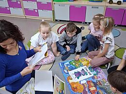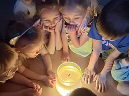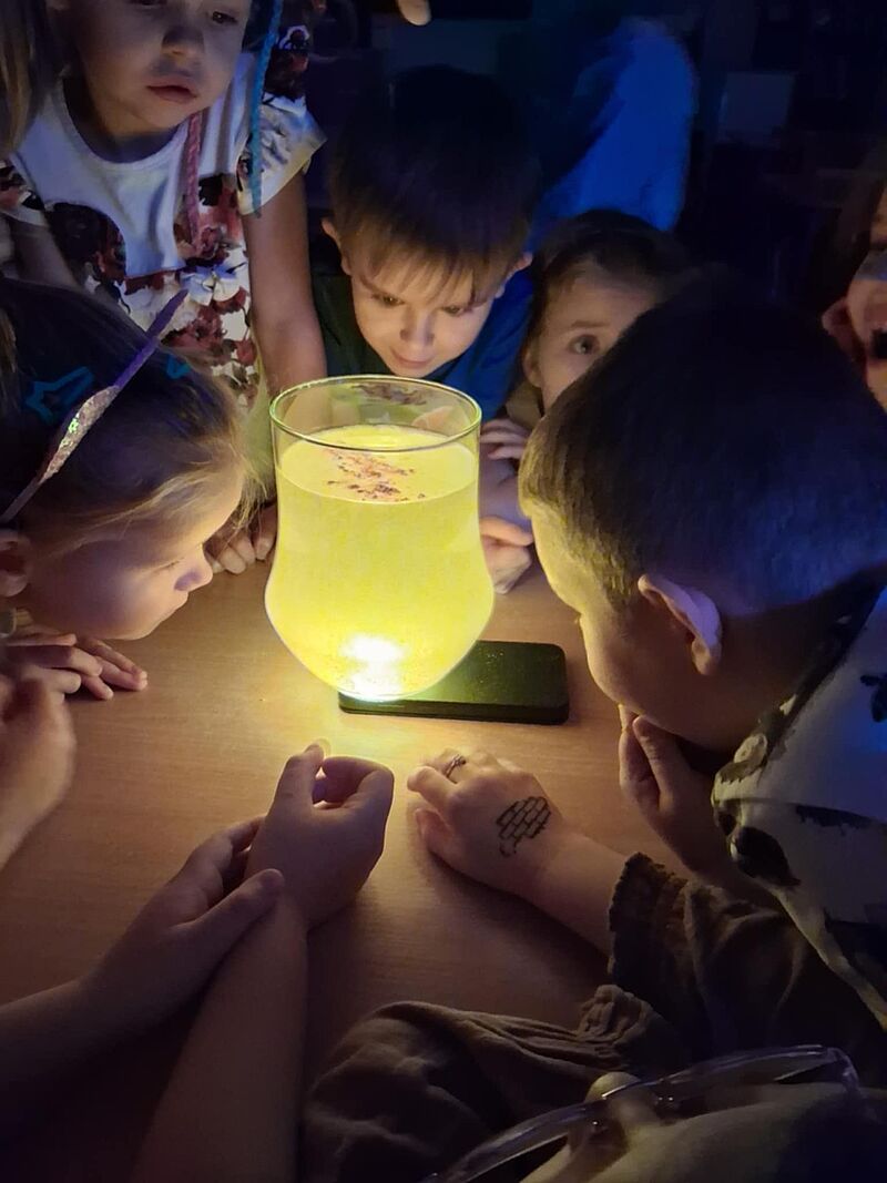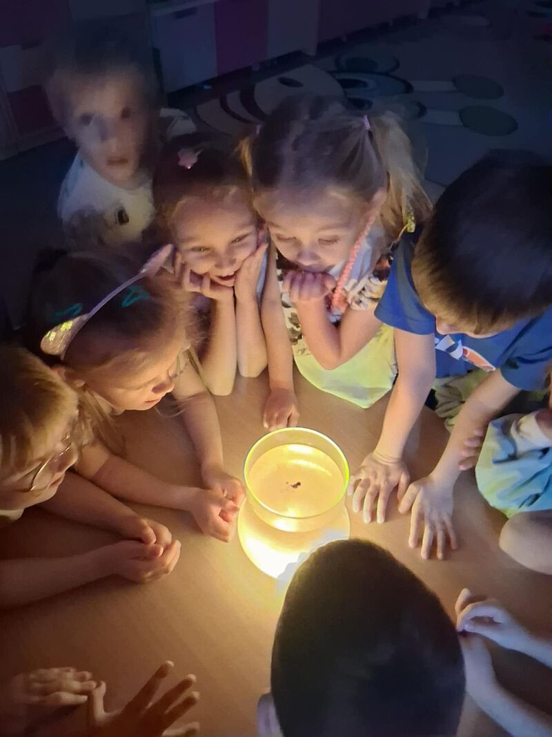 o sytuacjach, w których same były zaskoczone lub czymś zdumione. Wspólnie odkryliśmy, że zdziwienie może być zarówno przyjemne, jak i nieoczekiwane – ale zawsze towarzyszy mu ciekawość. Aby lepiej zrozumieć tę emocję, przeprowadziliśmy eksperyment ze światłem, który wywołał wśród dzieci prawdziwe „łał”! Misie z dużym zainteresowaniem obserwowały zmiany