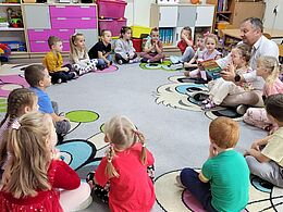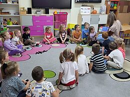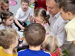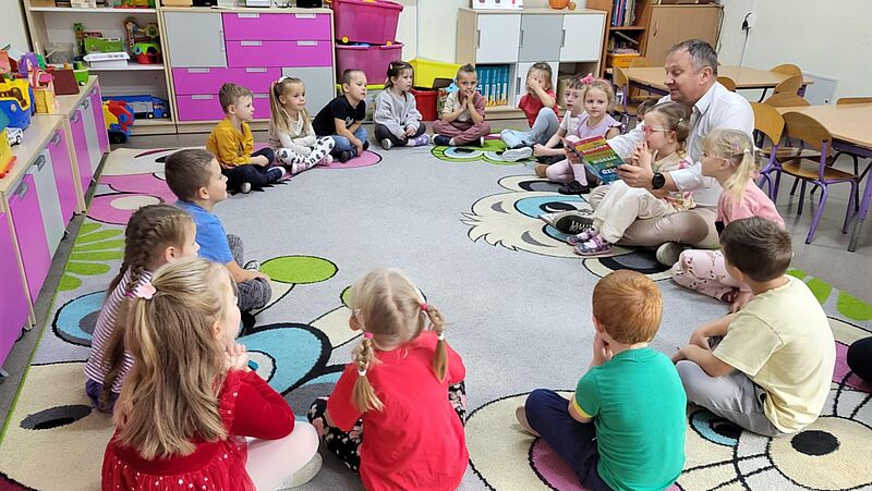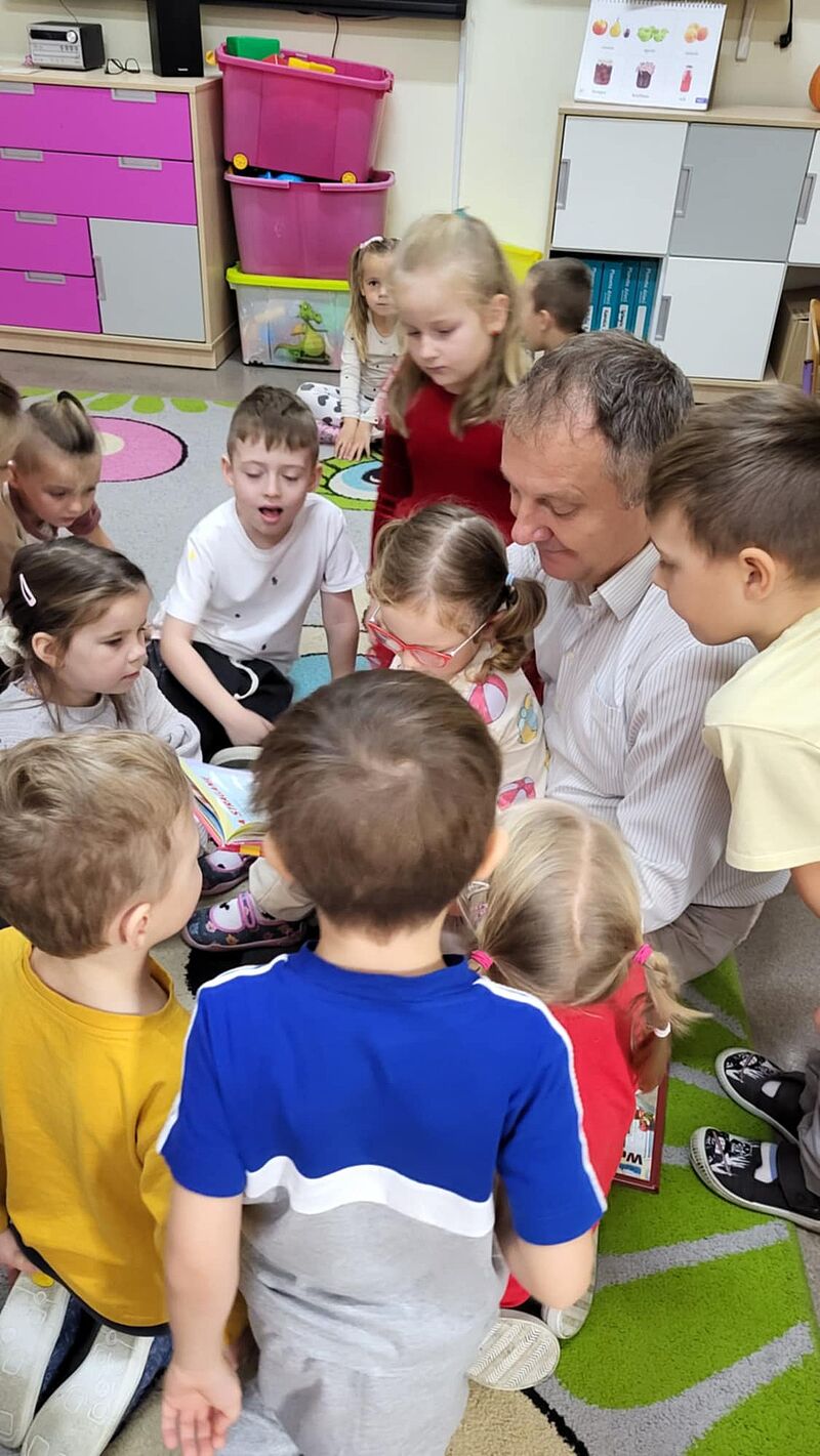 W październiku dzieci z grupy „Misie” odwiedzili mama Kuby - pani Ania oraz tata Gabrysi – pan Artur. Podczas pierwszego spotkania przedszkolaki usłyszały wiersz „Wycieczka po Wszechświecie”, z kolei na drugim poznały historię wrocławskich krasnali. Dzieci z wielkim zainteresowaniem słuchały czytanych przez rodziców treści i oglądały kolorowe ilustracje. Po wysłuchaniu utworów przedszkolaki wzięły udział we wspólnych zabawach ruchowych oraz wykonały ciekawe prace plastyczne.