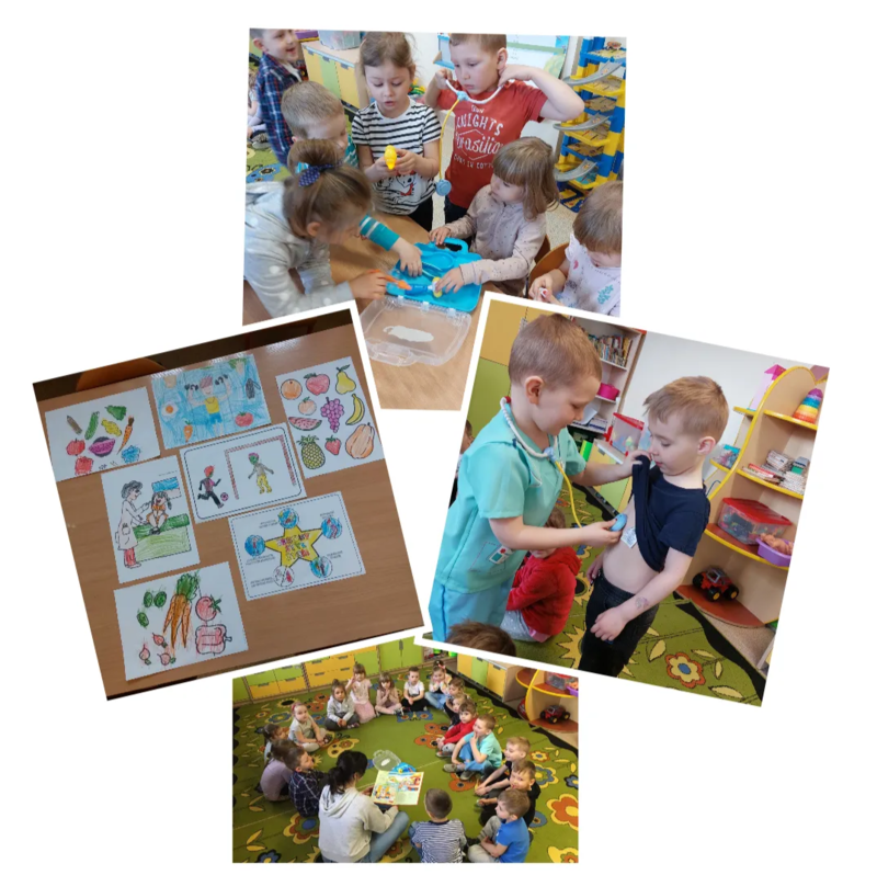 7 kwietnia "Krasnoludki" obchodziły Światowy Dzień Zdrowia. Z tej okazji wysłuchały wiersza o pewnej chorej żabie, brały udział w zabawach tematycznych i rozmawiały o zdrowiu oraz kolorowały obrazki zachęcające do zdrowego stylu życia.