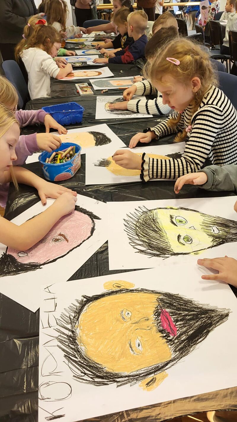 W środę 19.11.2025 r. dzieci z grupy „Misie” oraz „Biedronki” z samego rana wyruszyły na wycieczkę do Łodzi. W pierwszej kolejności przedszkolaki obejrzały pełne humoru, ciepła i mądrych przesłań przedstawienie „Wielki Zły Lis” w Teatrze Arlekin. Kolejnym punktem wycieczki były warsztaty plastyczne w Miejskiej Strefie Kultury, na których dzieci dowiedziały się, jak malować twarz z zachowaniem proporcji. Powstały prawdziwe arcydzieła. W drodze powrotnej przedszkolaki zatrzymały się na pysznym poczęstunku w ich ulubionej restauracji. Dzieci uznały wycieczkę za najlepszą na świecie