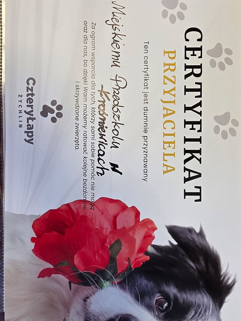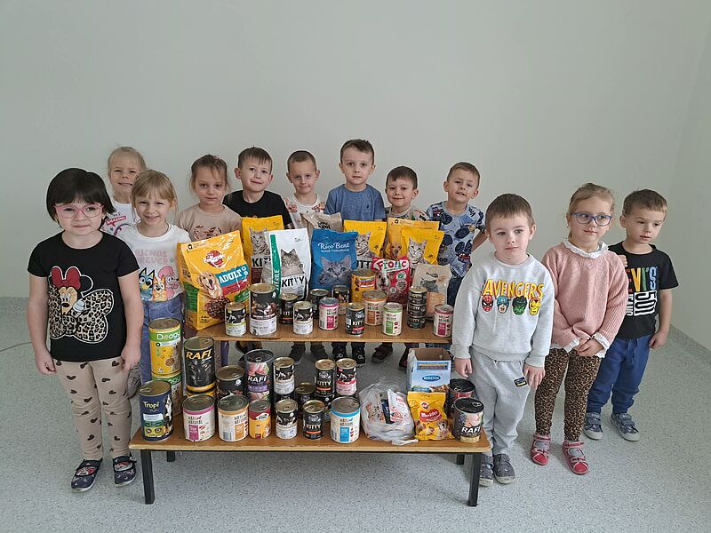 W naszym przedszkolu zakończyła się zbiórka karmy dla zwierząt ze schroniska „Cztery Łapy” w Żychlinie. Dzięki ogromnemu zaangażowaniu dzieci, rodziców oraz pracowników przedszkola udało się zebrać dużą ilość karmy dla piesków i kotków. Wszystkie dary zostały przekazane do schroniska i pomogą jego podopiecznym w codziennej opiece. Serdecznie dziękujemy wszystkim za okazane serce, dobroć i chęć niesienia pomocy.